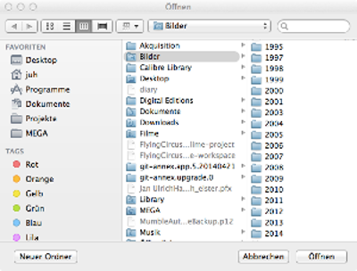 Wenn man diesen Button betätigt, kann man einen Ordner auswählen, den man mit anderen teilen möchte.Die Auswahl erfolgt über die übliche Dateiauswahl.