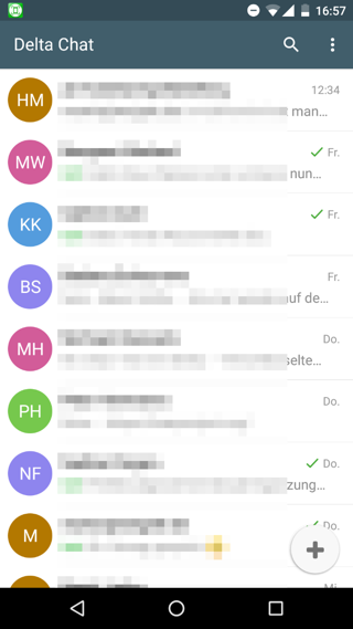 Bisher gibt es nur eine Android-Version von Delta Chat. Sie ist gut in Android integriert. Man kann sofort Nachrichten an alle Kontakte im Adressbuch versenden. Die Kontakte erscheinen mit ihren Avatar-Bildern, falls sie welche haben. Die Oberfläche ist sauber und intuitiv.
