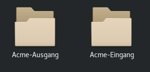 - Ein Eingangs- und/oder ein Ausgangsordner. In einem Eingangsordner empfängt man Daten von einer anderen Person. In den Ausgangsordner steckt man die Daten, die der andere empfangen soll. Wenn ich beispielsweise für den Kunden Acme arbeiten würde, könnte ich einen Eingangsordner